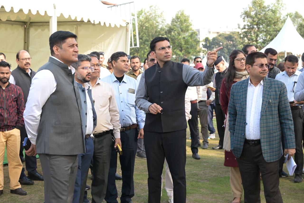 आयुक्त ने अधिकारियों को अपने दायित्वों का गंभीरता से निर्वहन करते हुए बेहतर समन्वय स्थापित करने पर बल दिया। निरीक्षण के दौरान मुख्य मंच, बैठने की व्यवस्था, बैरिकेडिंग, प्रकाश, एलईडी स्क्रीन, साउंड सिस्टम, यातायात एवं पार्किंग व्यवस्थाओं का गहन अवलोकन किया गया। उन्होंने निर्देशित किया कि मिनट-टू-मिनट कार्यक्रम के अनुरूप सभी व्यवस्थाएं सुनिश्चित की जाएं तथा विद्युत एवं साउंड सिस्टम के लिए पर्याप्त बैकअप रखा जाए।