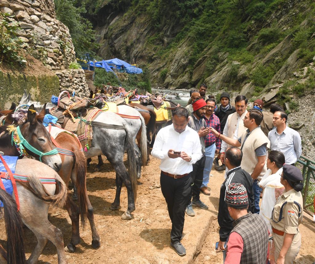 केदारनाथ यात्रा मार्ग पर तीर्थ यात्रियों एवं घोड़ा खच्चरों के लिए की गई व्यवस्थाओं का मंत्री सौरभ बहुगुणा ने लिया जायजा