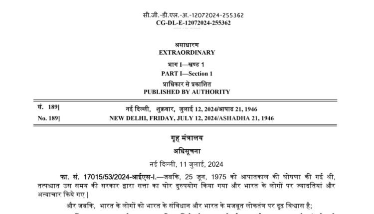 25 जून को ‘संविधान हत्या दिवस’ के रूप में मनाने का भारत सरकार ने लिया निर्णय