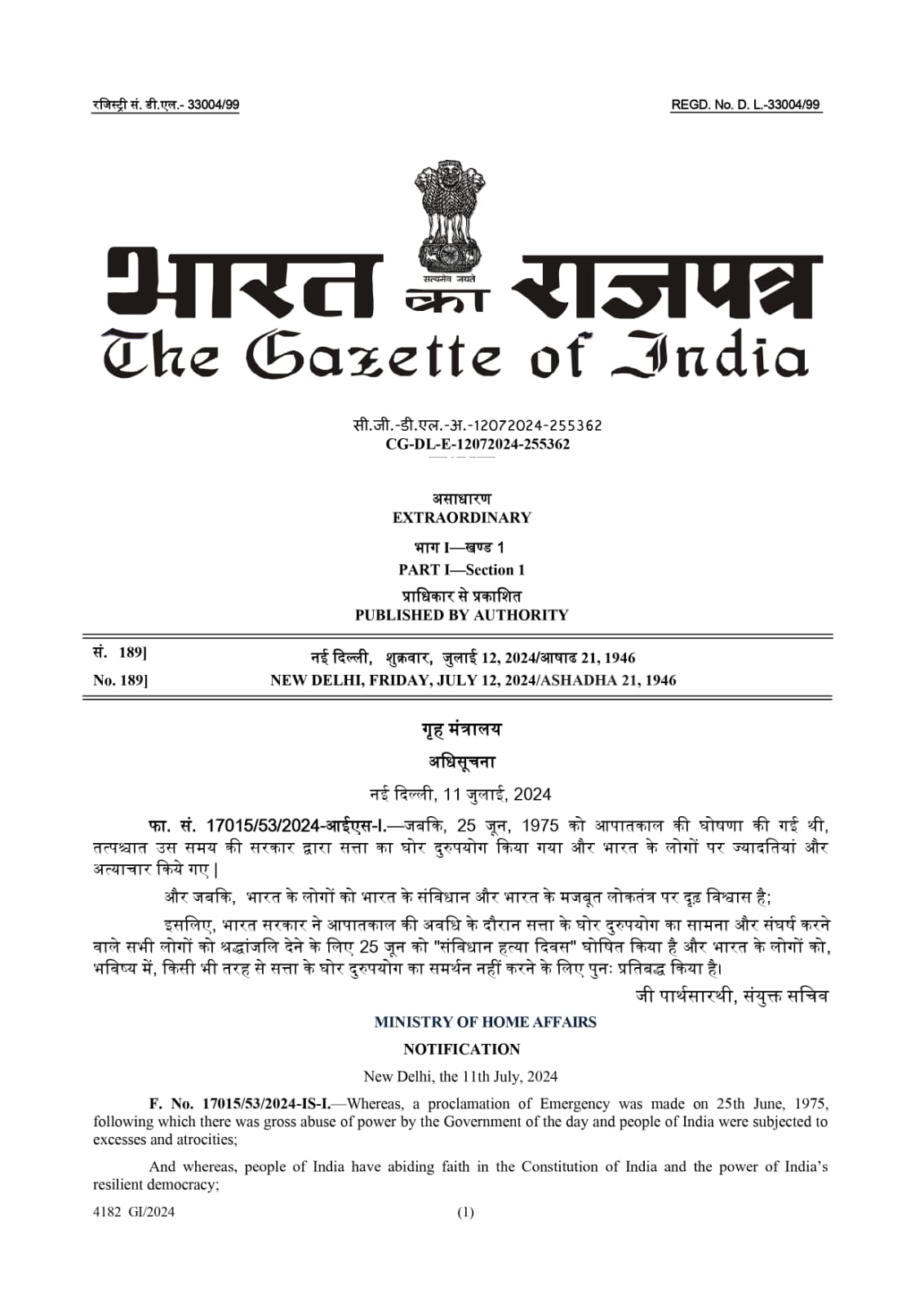 नई दिल्ली/देहरादून, न्यूज यूके लाइव डॉट इन। भारत सरकार ने हर साल 25 जून को ‘संविधान हत्या दिवस’ के रूप में मनाने का निर्णय किया है।