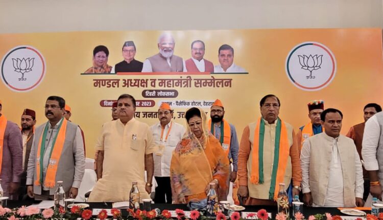 सुभाष रोड स्थित एक निजी होटल में आज भाजपा टिहरी लोकसभा के मंडल अध्यक्ष एवं महामंत्रियों का यह सम्मेलन तीन सत्रों में आयोजित किया गया । उद्घाटन सत्र में दीप प्रज्वलन करने के उपरांत श्री धर्मेंद्र प्रधान ने मार्गदर्शन देते हुए कहा, 2014 से लगातार देवभूमि की जनता का आशीर्वाद हमे 4 चुनावों में मिलता आया है और ये सब कार्यकर्ताओं की अथक मेहनत का परिणाम है । लेकिन हम सबको ध्यान रखना है कि इस बार लोकसभा चुनाव की लड़ाई निर्णायक और देश की नई दिशा और ऊंचाई प्राप्त करने पर मुहर लगाने के लिए है। उन्होंने जोर देते हुए कहा, आम चुनावों के लिए लगभग 180 दिन शेष हैं । लिहाजा सबको अपना शत प्रतिशत समय और सहयोग पार्टी देना चाहिए ताकि 51 फीसदी के वोट लक्ष्य पूरा कर मोदी जी को लगातार तीसरी बार देश की बागडोर सौंपी जाए ।