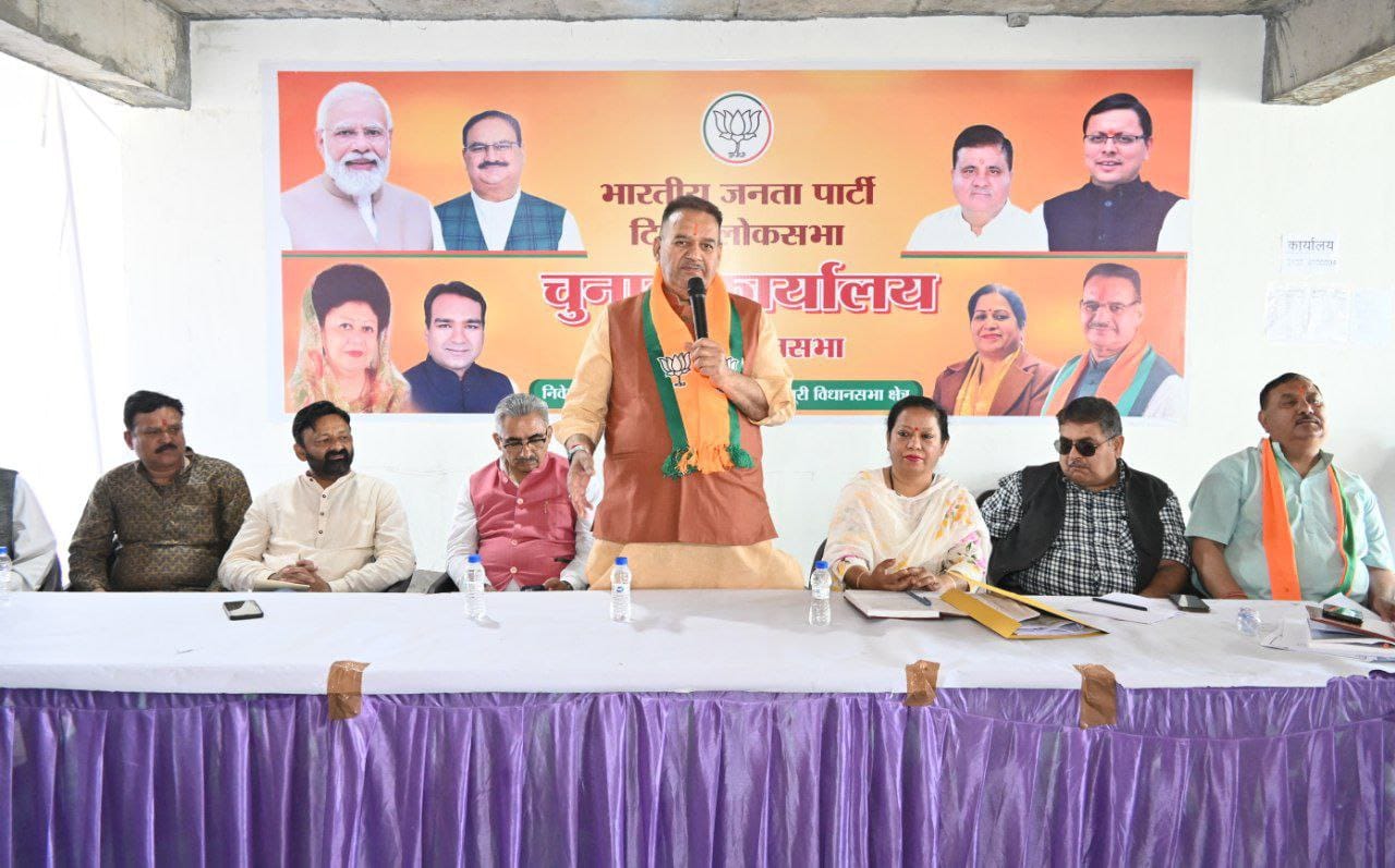 देहरादून, न्यूज यूके लाइव डॉट इन। कैबिनेट मंत्री गणेश जोशी ने मंगलवार को सालावाला स्थित चुनाव कार्यालय में लोकसभा चुनाव के दृष्टिगत टिहरी लोकसभा के अंतर्गत मसूरी विधानसभा क्षेत्र के पार्टी पदाधिकारियों और कार्यकर्ताओं के साथ आगामी चुनावी कार्यक्रमों के संबंध में एक महत्वपूर्ण बैठक की।