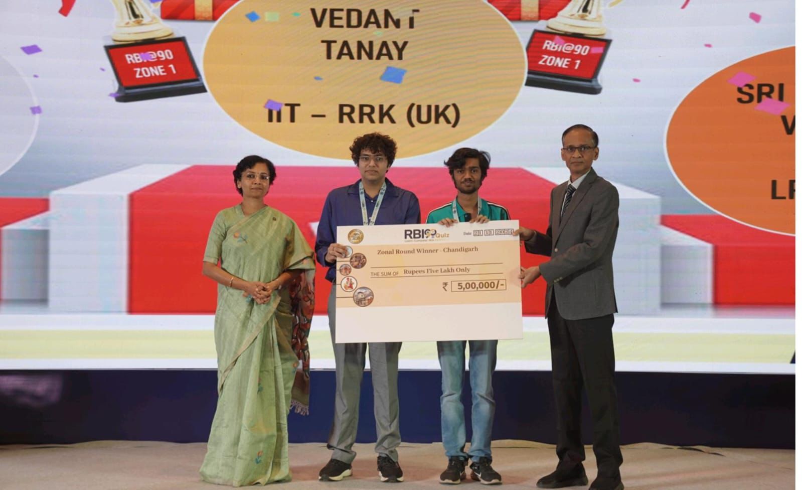 आईआईटी, रुड़की की विजेता टीम, जिसमें तनय कपाड़िया और वेदांत द्विवेदी शामिल हैं, ने 6 दिसंबर, 2024 को मुंबई में आयोजित होने वाले आरबीआई90 क्विज के नेशनल राउंड में अपना स्थान बनाया। नेशनल राउंड में यह टीम देश भर के प्रतिभाशाली प्रतिभागियों के साथ प्रतिस्पर्धा करेगी। साथ ही, शहीद सुखदेव कॉलेज ऑफ बिजनेस स्टडीज, नई दिल्ली और लवली प्रोफेशनल यूनिवर्सिटी, कपूरथला, पंजाब ने क्रमशः दूसरा और तीसरा स्थान हासिल किया। शीर्ष तीन टीमों को क्रमशः 5 लाख, 4 लाख और 3 लाख रुपये के पुरस्कार प्रदान किए जाएंगे।