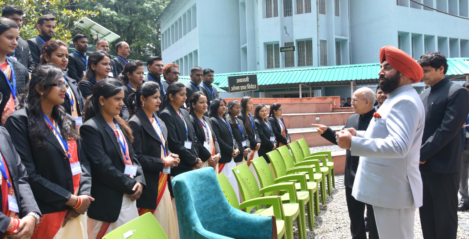 इस दौरान राज्यपाल ने अकादमी में आयोजित हो रहे सेवा-प्रवेश प्रशिक्षण तथा स्वच्छ भारत मिशन से संबंधित प्रशिक्षण कार्यक्रमों के प्रशिक्षु अधिकारियों एवं अकादमी के संकाय अधिकारियों को संबोधित किया। राज्यपाल ने अधिकारियों को संबोधित करते हुए कहा कि वे अपनी सोच एंव विचार के केंद्र में सेवा, समर्पण और सुशासन के त्रिशूल को धारण करें। अधिकारी अपनी सोच, विचार और धारणा इस प्रकार रखें जिससे अंतिम छोर पर बैठे व्यक्ति तक मूलभूत सुविधाएं पहुंच सकें।