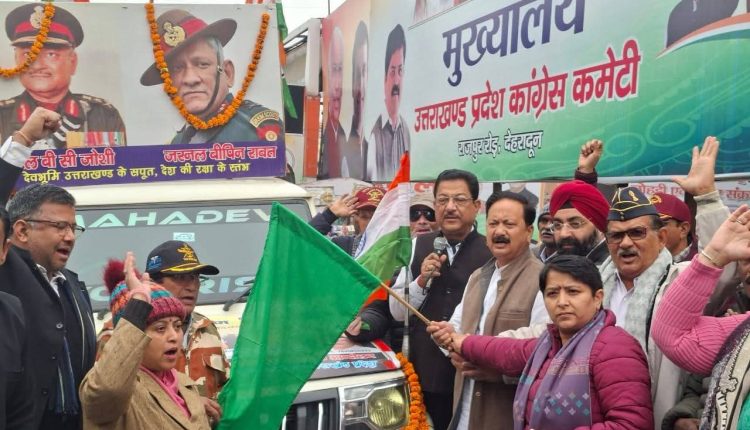 देहरादून, न्यूज यूके लाइव डॉट इन। उत्तराखंड में प्रदेश कांग्रेस पूर्व सैनिक विभाग अध्यक्ष कर्नल राम रतन नेगी के नेतृत्व में चलाई जा रही जनजागरण यात्रा के दूसरे चरण का शुभारंभ आज प्रदेश कांग्रेस मुख्यालय राजीव भवन से प्रदेश कांग्रेस कमेटी के पूर्व अध्यक्ष व सीडब्लूसी सदस्य करण माहरा ने हरी झंडी दिखा कर किया।