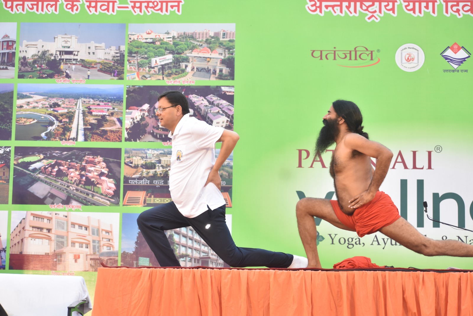 अंतरराष्ट्रीय योग दिवस: बाबा रामदेव संग मुख्यमंत्री धामी ने किया योग