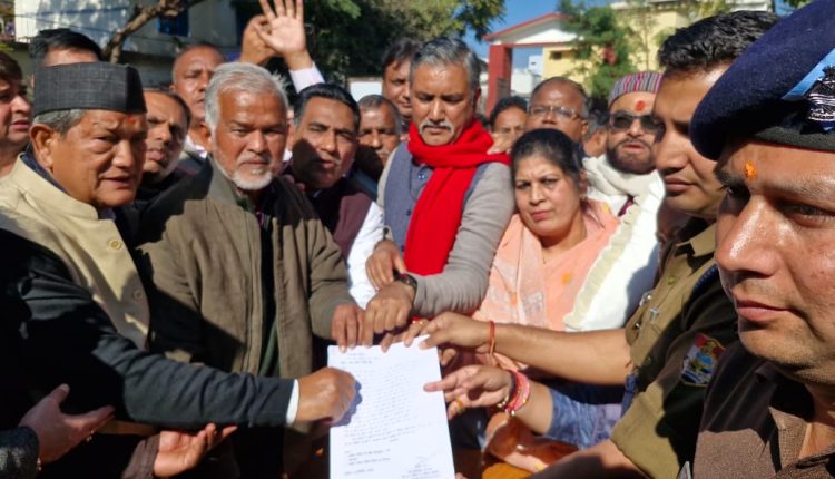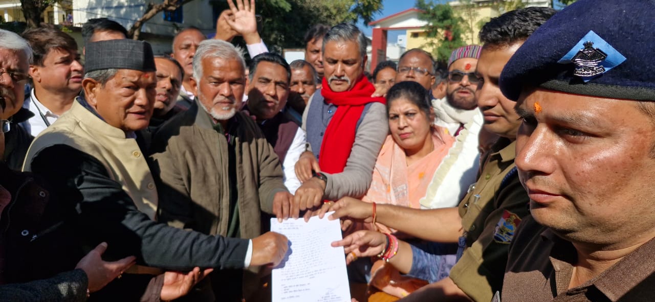 भाजपा के दुष्प्रचार के विरुद्ध रिपोर्ट कराने नेहरु कालोनी थाना पहुॅचे पूर्व CM हरीश रावत