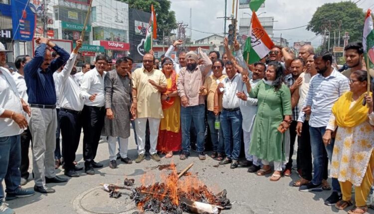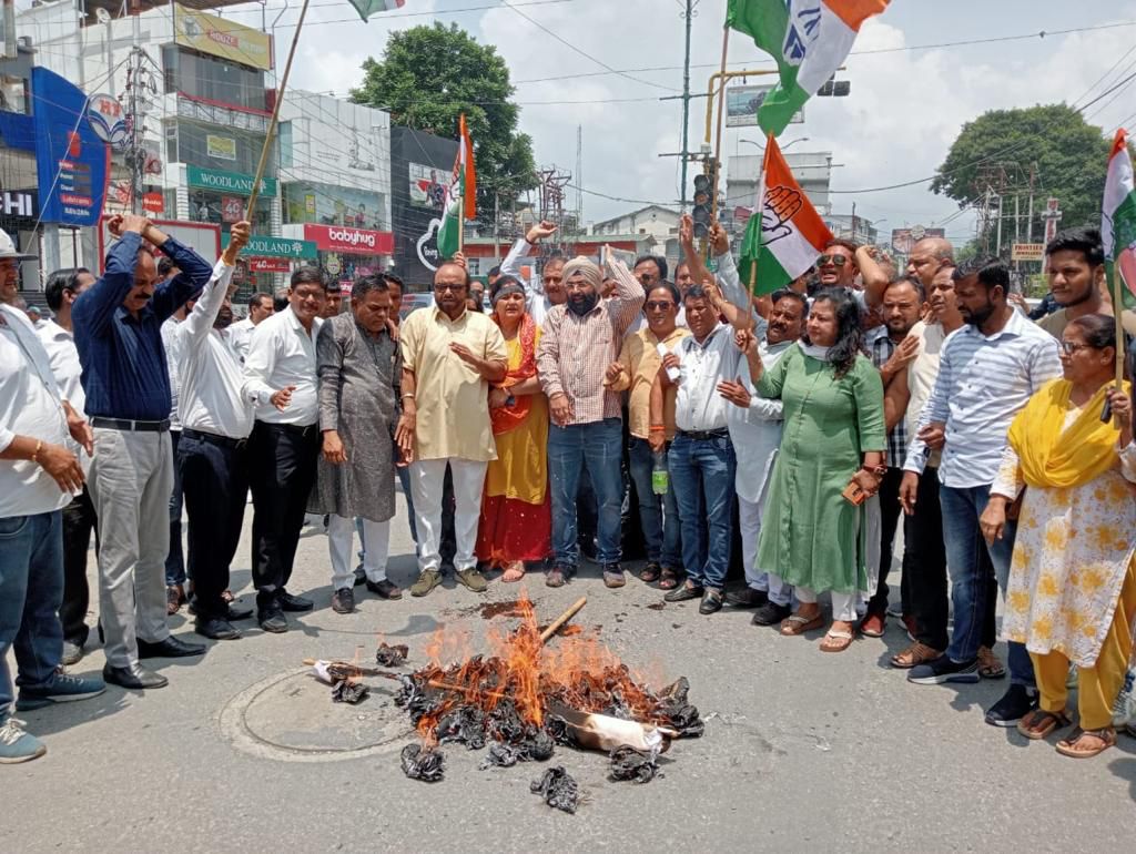 भाजपा सरकार के खिलाफ कांग्रेसियों ने किया प्रदर्शन, पुतला दहन किया