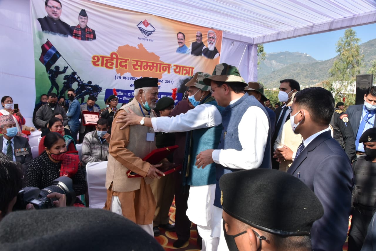 सैनिक कल्याण मंत्री गणेश जोशी ने कहा कि देश की सेना में हर पांचवा सैनिक उत्तराखण्ड से होता है। 63 करोङ रूपए की लागत से भव्य सैन्य धाम का निर्माण किया जा रहा है। 15 नवम्बर से 15 दिसम्बर तक एक माह तक शहीद सम्मान यात्रा का आयोजन किया गया। प्रदेश में 1734 शहीदों के घरों से पवित्र मिट्टी एकत्र की गई। इस पवित्र मिट्टी का उपयोग सैन्य धाम में किया जाएगा। हम किसी शहीद को वापिस नहीं ला सकते, परंतु शहीदों का सम्मान और उनके परिवार की देखभाल करना हमारा परम दायित्व है।