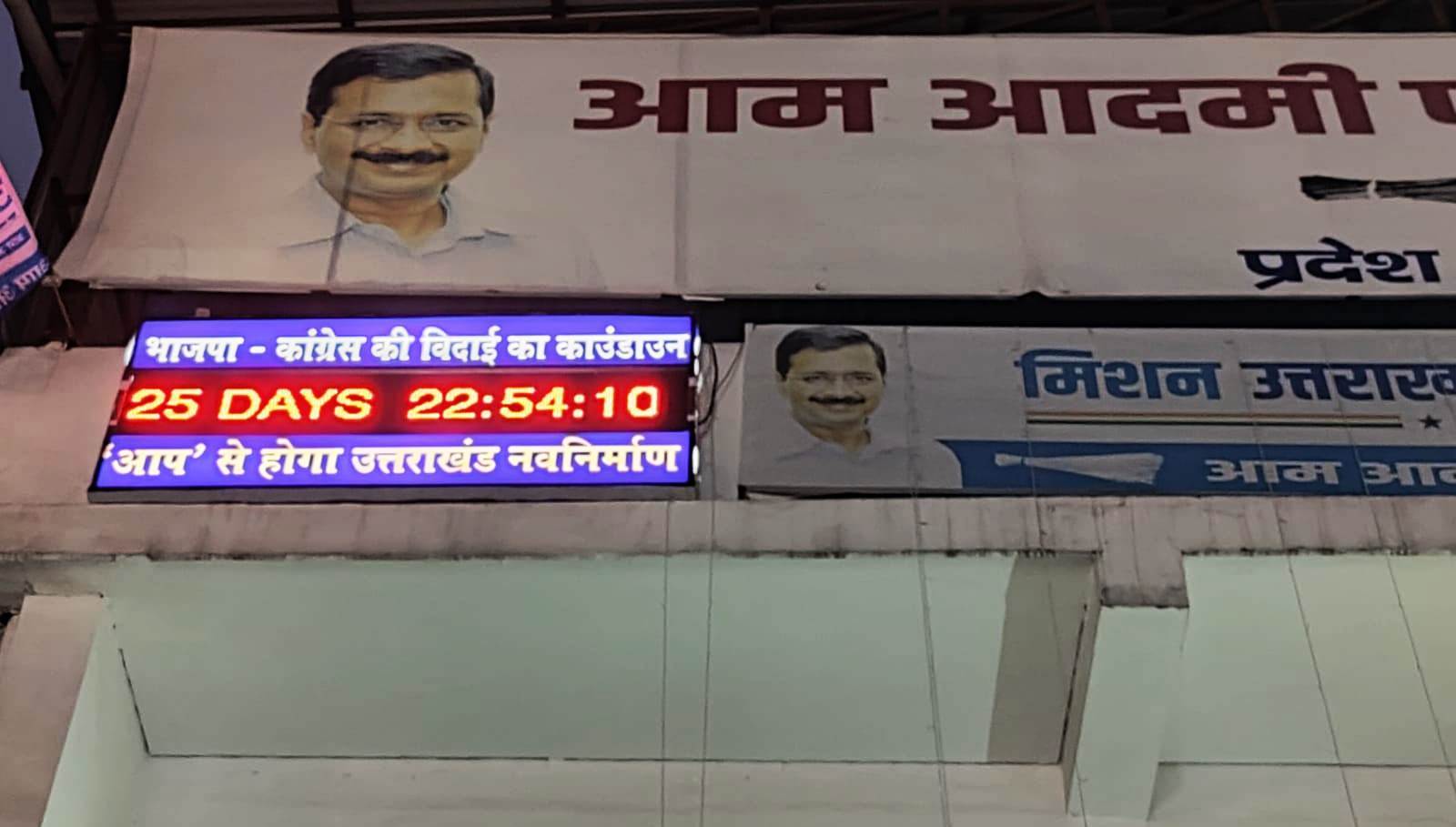 बीएसएनके न्यूज संवाददाता / देहरादून डेस्क। उत्तराखंड में 14 फरवरी को चुनाव होने हैं जिसका काउंटडाउन शुरू हो चुका है। प्रदेश की जनता नए विकल्प के लिए पूरी तरीके से तैयार है। आम आदमी पार्टी ने भी प्रदेश कार्यालय के बाहर में कांग्रेस बीजेपी की विदाई के लिए अब काउंट डाउन की घड़ी लगा दी है । प्रदेश कार्यालय के बाहर बड़ी क्लॉक आप ने लगाई है,जिसमें समय के साथ विदाई दिखाया जा रहा है ।