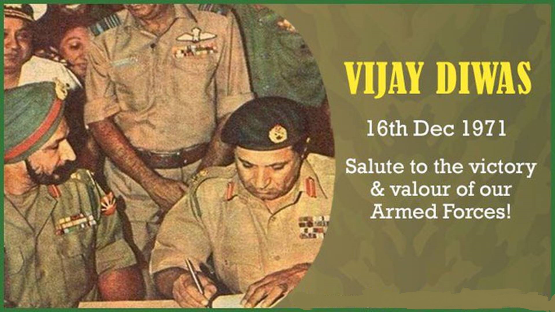 मुख्यमंत्री ने 1971 भारत-पाक युद्ध के शहीदों को नमन करते हुए कहा कि हमारे सैनिकों के पराक्रम से पाकिस्तानी सैनिकों का मनोबल टूट गया था। मुख्यमंत्री ने कहा कि उत्तराखण्ड, देवभूमि के साथ ही वीर भूमि भी है। यहां सदैव देशभक्ति व राष्ट्र के प्रति समर्पण की भावना रही है।