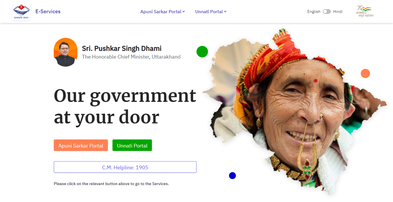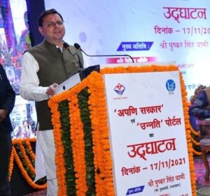 मुख्यमंत्री धामी ने किया ‘”अपणि सरकार” एवं उन्नति पोर्टल का उद्घाटन ,अब एक क्लिक पर मिलेगी 75 सेवाएँ