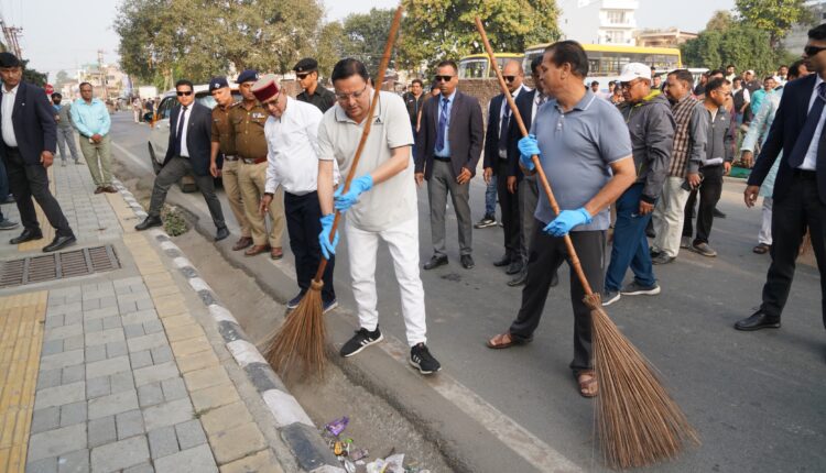 CM धामी ने झाड़ू लगाकर स्वच्छता का दिया संदेश