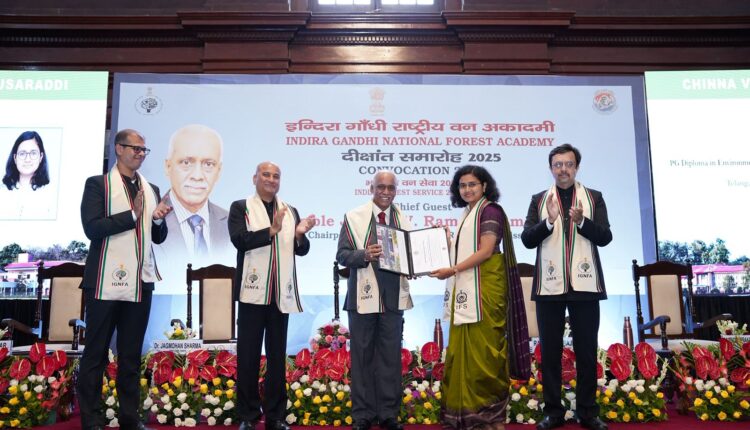 देहरादून, न्यूज यूके लाइव डॉट इन। इन्दिरा गाँधी राष्ट्रीय वन अकादमी, देहरादून में प्रशिक्षणरत 2023 बैच के भारतीय वन सेवा परिवीक्षार्थियों का दीक्षांत समारोह बुधवार को दीक्षांत गृह, वन अनुसंधान संस्थान में सम्पन्न हुआ। इस अवसर पर माननीय न्यायमूर्ति वी. रामासुब्रमण्यन, अध्यक्ष, राष्ट्रीय मानव अधिकार आयोग मुख्य अतिथि के रूप में शामिल और परिवीक्षार्थियों को प्रमाणपत्र तथा पदक प्रदान किए। यह 21वीं सदी में पासआउट होने वाला सबसे बड़ा बैच है।