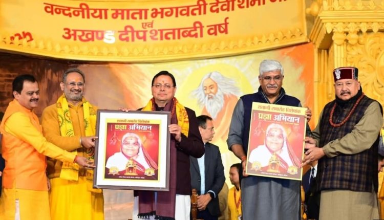इस अवसर पर मुख्यमंत्री पुष्कर सिंह धामी ने कहा कि यह शताब्दी समारोह वंदनीया माता भगवती देवी शर्मा के तपस्वी जीवन, निःस्वार्थ सेवा और अखंड साधना के प्रति राष्ट्र की कृतज्ञता का साक्षात भावात्मक अभिव्यक्ति है। माताजी का संपूर्ण जीवन त्याग, बलिदान और साधना की वह ज्योति है, जिसने असंख्य जीवनों को सही दिशा और नई दृष्टि दी। उन्होंने कहा कि गायत्री परिवार को किसी एक संगठन की सीमाओं में नहीं बाँधा जा सकता, यह उस युग चेतना का वह प्रवाह है, जो व्यक्ति से समाज और समाज से राष्ट्र के उत्थान की ओर अग्रसर करता है।