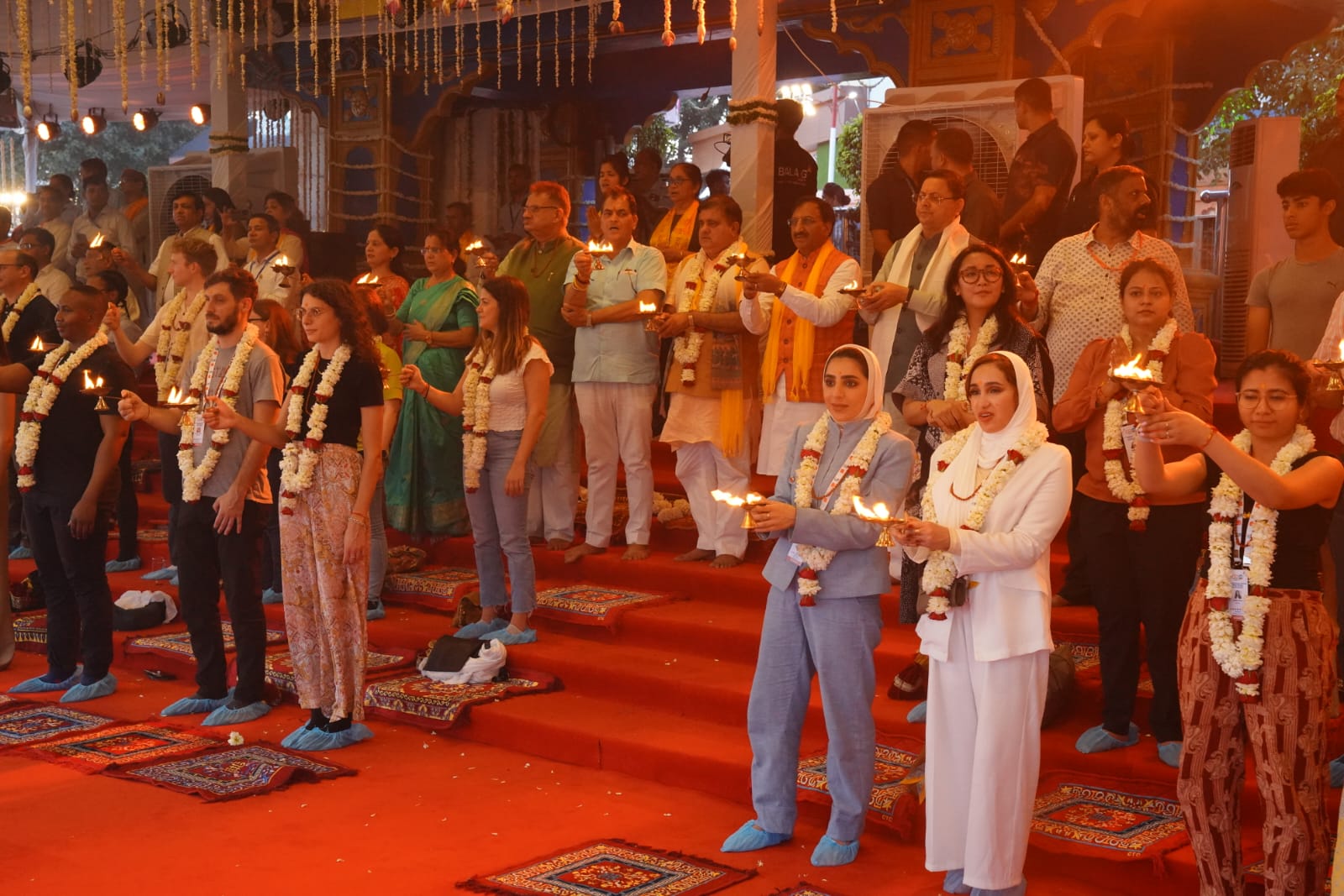 G 20 की बैठक में पधारे मेहमानों ने त्रिवेणी घाट गंगा आरती में किया प्रतिभाग