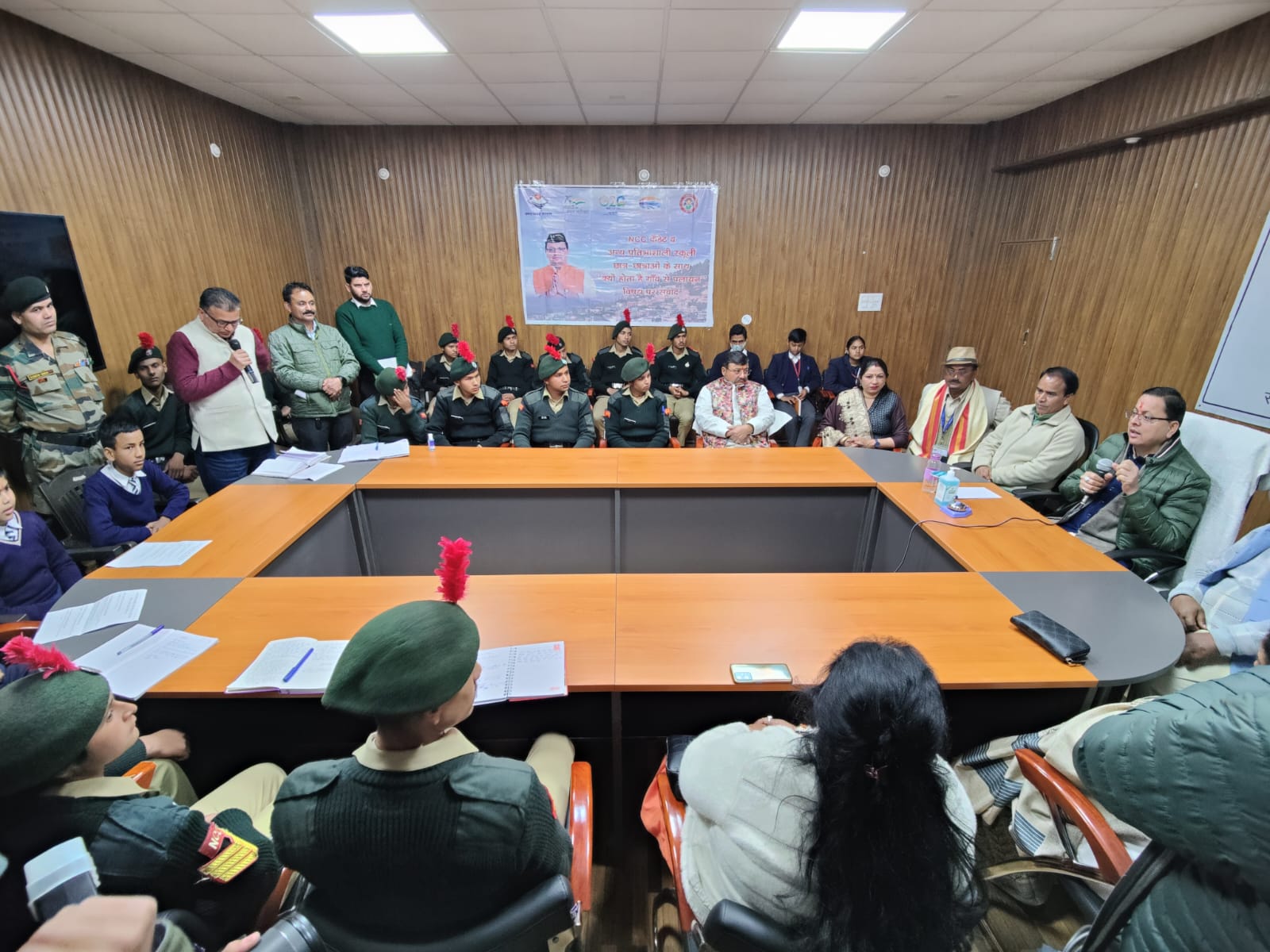 मुख्यमंत्री श्री पुष्कर सिंह धामी ने कहा कि इस बार उत्तराखंड की झांकी “मानसखंड“ को गणतंत्र दिवस परेड में प्रथम स्थान प्राप्त हुआ है। उन्होंने कहा एन.सी.सी से हमें सेना के जैसा अनुशासन एवं साहस सीखने को मिलता है। एन.सी.सी जवान हर मोर्चे पर अपने तन मन के साथ खड़े रहते हैं। देश के अंदर आने वाले हर संकट में एनसीसी हमेशा आगे रहती है। उन्होंने कहा जीवन में शिक्षा प्राप्त करने का समय अमूल्य होता है। हमें अपने विद्यार्थी काल में पूरे मनोयोग से कार्य करना चाहिए। यदि संकल्प लेकर आगे बढ़ा जाए तो सपने जरूर साकार होते हैं।