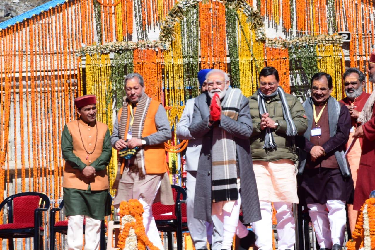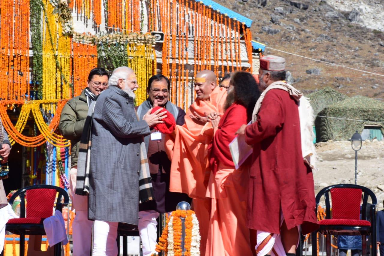 मुख्यमंत्री पुष्कर सिंह धामी ने प्रधानमंत्री मोदी का स्वागत करते हुए कहा कि वह प्रदेश की सवा करोड़ जनता की तरफ से देश के प्रधानमंत्री नरेंद्र मोदी का स्वागत करते हैं। उनके अनुसार प्रधानमंत्री का हिमालय और हिमालय के तमाम मंदिरों से विशेष लगाव रहा है। प्रधानमंत्री ने हमेशा से यहां से आध्यात्मिक दिव्य ऊर्जा प्राप्त की है। पीएम मोदी का धन्यवाद करते हुए सीएम धामी ने कहा कि उनके निर्देश पर ही केदारनाथ के पुनर्निर्माण के कार्य संपन्न हो रहे हैं। साल 2013 में आई दैवीय आपदा में आदि गरु शंकराचार्य की समाधि बह गई थी। जिसके बाद प्रधानमंत्री नरेंद्र मोदी के दिशा निर्देश में केदारनाथ धाम के पुनर्निर्माण कार्यों के तहत आदि गुरु शंकराचार्य की समाधि अद्भुत तरीके से बनाई गई है। इसका सीधा लाभ उत्तराखंड के पर्यटन और यहां के स्थानीय लोगों को मिलेगा।
