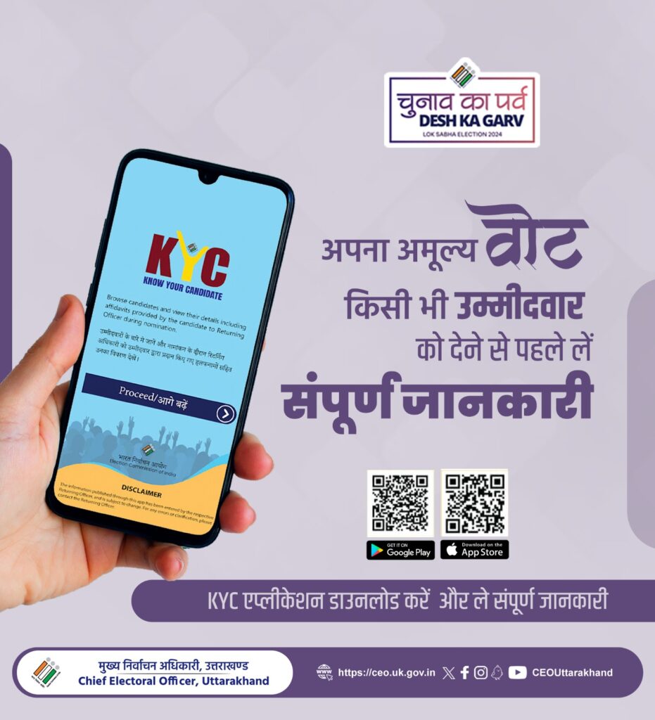 देहरादून, न्यूज यूके लाइव डॉट इन। मतदान से पहले अपने उम्मीदवारों के बारे में अवश्य जानें। ‘Know Your Candidate’ ऐप डाउनलोड करें और अपने क्षेत्र के उम्मीदवारों की पृष्ठभूमि व अन्य विवरणों की जानकारी प्राप्त करें।