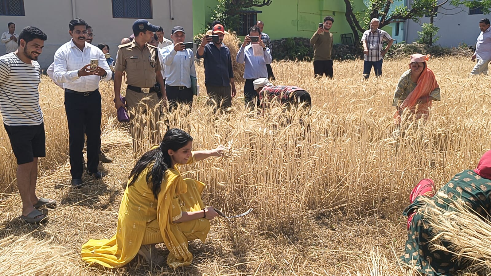 जिलाधिकारी ने कृषकों संग की गेंहू की कटाई