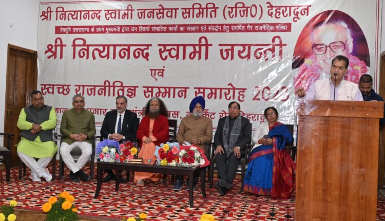 इस अवसर पर श्री नित्यानंद स्वामी जन सेवा समिति द्वारा आयोजित स्वच्छ राजनीतिज्ञ सम्मान समारोह में राज्यसभा सांसद श्री नरेश बंसल को स्वच्छ राजनीतिज्ञ सम्मान से सम्मानित किया गया। परमार्थ निकेतन के परमाध्यक्ष स्वामी चिदानंद सरस्वती को उत्तराखंड गौरव सम्मान, पद्मश्री डॉ माधुरी बड़थ्वाल को सांस्कृतिक संपदा अलंकरण, कुलाधिपति स्वामी राम हिमालयन यूनिवर्सिटी डॉ विजय धस्माना को शिक्षाविद अलंकरण, सी. ई. ओ. रामापीर इंडस्ट्रीज कॉर्पोरेशन श्री दर्शन सांखला को उद्योग अलंकरण तथा डॉ अल्का आहूजा को चिकित्सा सेवा अलंकरण प्रदान किया गया।