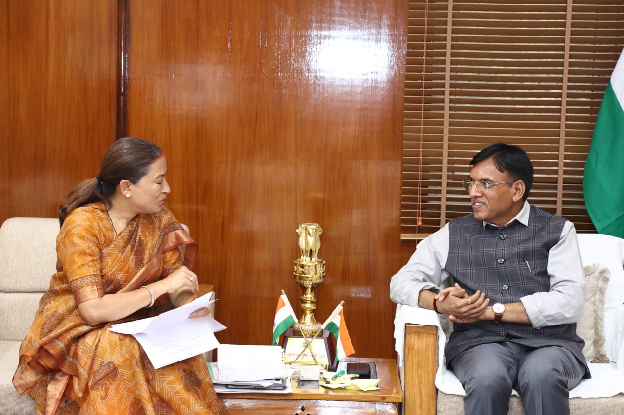 केंद्रीय मंत्री मनसुख मंडाविया से खेल मंत्री रेखा आर्या ने की शिष्टाचार भेंट