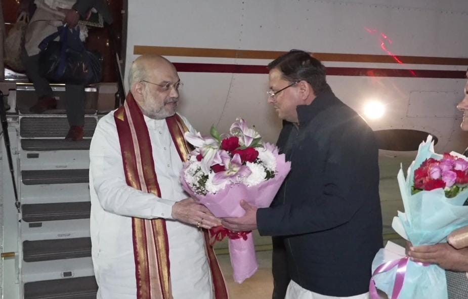 केंद्रीय गृह मंत्री अमित शाह पहुंचे उत्तराखंड, जोरदार स्वागत