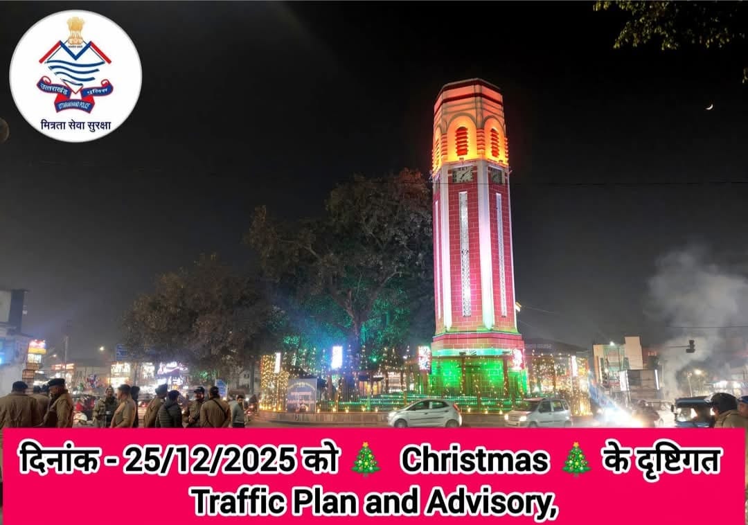 देहरादून, न्यूज यूके लाइव डॉट इन। एसएसपी के आदेश पर देहरादून पुलिस ने क्रिसमस को लेकर ट्रैफिक प्लान जारी किया गया है।