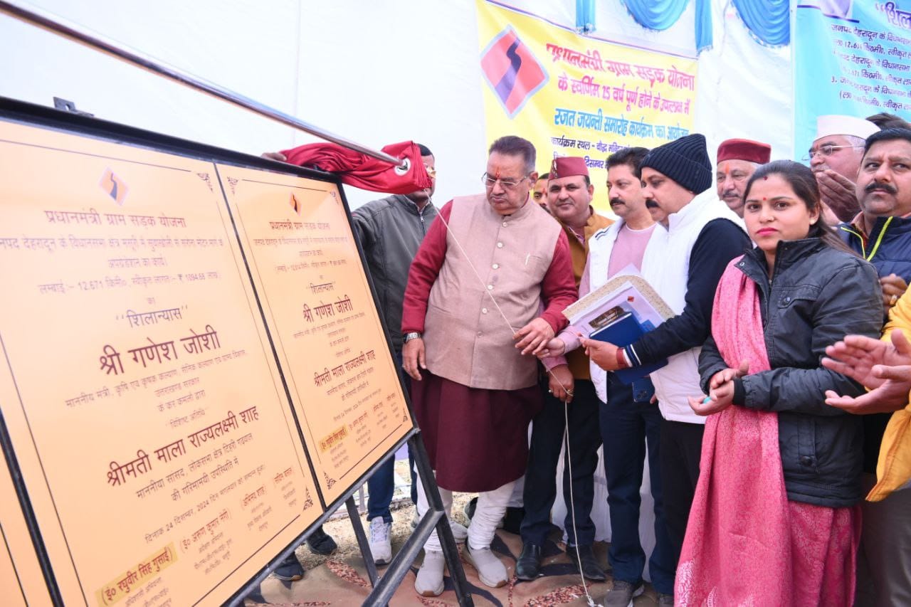 देहरादून, न्यूज यूके लाइव डॉट इन। सूबे के ग्राम्य विकास मंत्री गणेश जोशी ने देहरादून के सहस्त्रधारा में प्रधानमंत्री ग्राम सड़क योजना की 25वें वर्ष में प्रवेश करने एवं पूर्व प्रधानमंत्री भारत रत्न अटल बिहारी वाजपेयी की 100वीं जयंती की पूर्व बेला पर मसूरी विधानसभा क्षेत्र के अंतर्गत लगभग 37 करोड़ से निर्मित होने वाली 03 सड़क योजनाओं (सहस्त्रधारा-सरोना, सुवाखोली-सरोना एवं मालदेवता-सेरकी-सिल्ला मोटर मार्ग) का शिलान्यास किया।