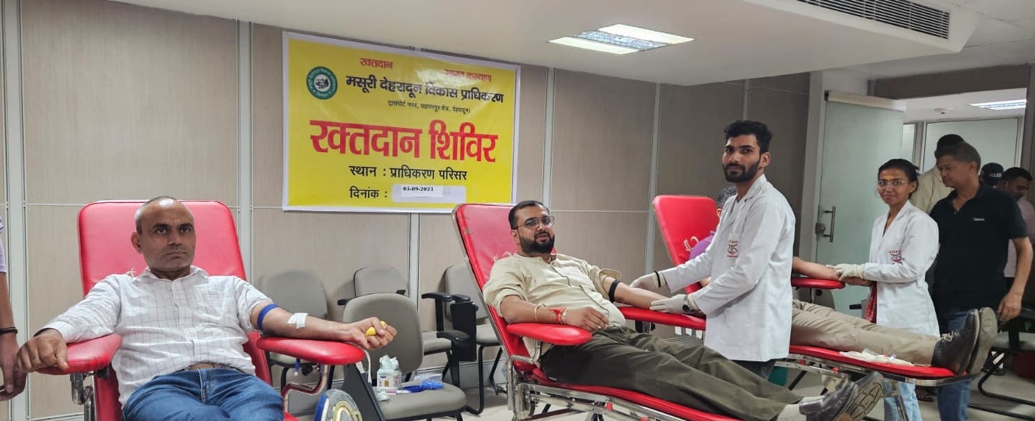 इसी क्रम में आज प्राधिकरण सभागार में उपाध्यक्ष श्री वंशीधर तिवारी व सचिव श्री मोहन सिंह बर्निया की मौजूदगी में एक रक्तदान शिविर का आयोजन किया गया जिसमें सभी ने बढ़चढ़कर कर भाग लेते हुए रक्तदान किया। शिविर दोपहर दो बजे से लेकर साढ़े चार बजे तक आयोजित हुआ। उपाध्यक्ष महोदय द्वारा इस दौरान एक बार पुनः दून मेडिकल कॉलेज के प्राचार्य डॉ आशुतोष सयाना से फोन पर वार्ता की और कहा कि आगामी दिनों में जब कभी भी रक्त की आवश्यकता होगी, प्राधिकरण कर्मचारी इस हेतु तत्पर हैं।
