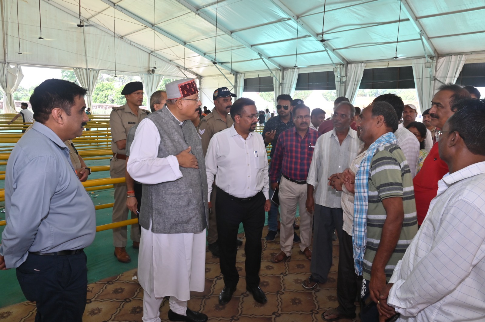 हरिद्वार, न्यूज यूके लाइव डॉट इन। प्रदेश के लोक निर्माण, सिंचाई, पंचायतीराज, ग्रामीण निर्माण,पर्यटन, धर्मस्व, संस्कृति मंत्री एवं जनपद के प्रभारी मंत्री सतपाल महाराज ने गुरूवार को अचानक ऋषिकुल मैदान पहुॅचकर चारधाम यात्रा पंजीकरण केन्द्र का स्थलीय निरीक्षण किया। निरीक्षण के दौरान उन्होंने पंजीकरण केन्द्र पर यात्रियों की सुविधा हेतु पंजीकरण काउण्टर, बैठने, पेयजल, शौचायलय, चिकित्सा, सुरक्षा आदि व्यवस्थाओं का जायजा लेते हुए अधिकारियों को आवश्यक दिशा-निर्देश दिये।