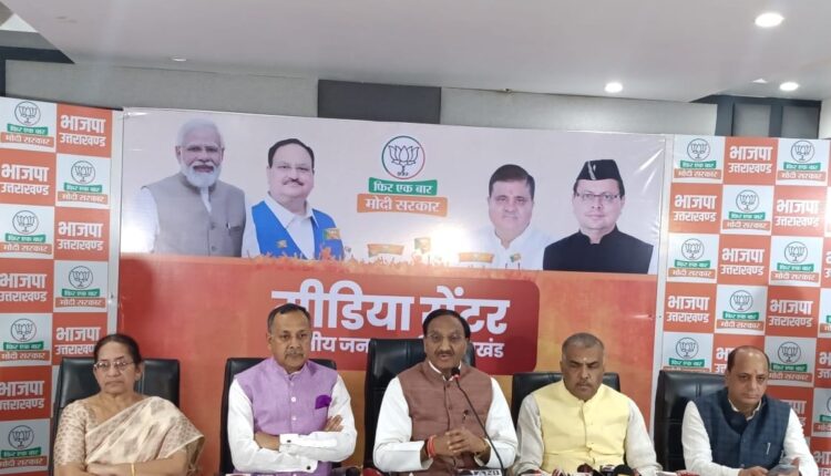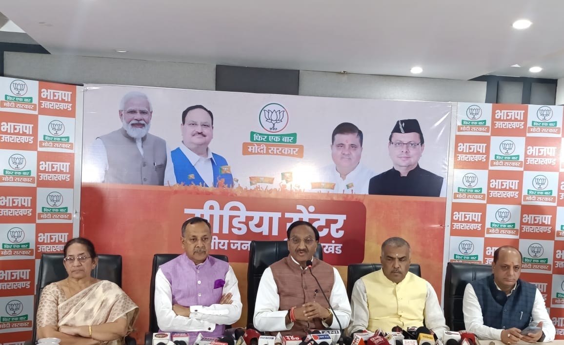 उन्होंने विश्वास जताते हुए कहा इस बार भी देवभूमि की जनता ने पांचो सीटों पर 5 लाख के अंतर से कमल खिलाने का मन बनाया हुआ है। आज सभी पार्टियों खाली हो रही हैं और समाज का प्रत्येक वर्ग भाजपा से जुड़ना चाहता है क्योंकि विकसित भारत के मिशन में सहयोग के लिए सभी आगे आना चाहते हैं। पत्रकार वार्ता में प्रदेश कोषाध्यक्ष श्री पुनीत मित्तल, प्रदेश मीडिया प्रभारी श्री मनवीर चौहान प्रदेश प्रवक्ता श्री सुरेश जोशी, कैंट विधायक श्रीमती सविता कपूर, सह मीडिया प्रभारी राजेंद्र नेगी, मानिक निधि शर्मा, संजीव वर्मा प्रमुख रूप से मौजूद रहे ।