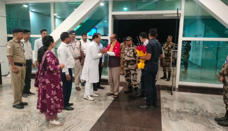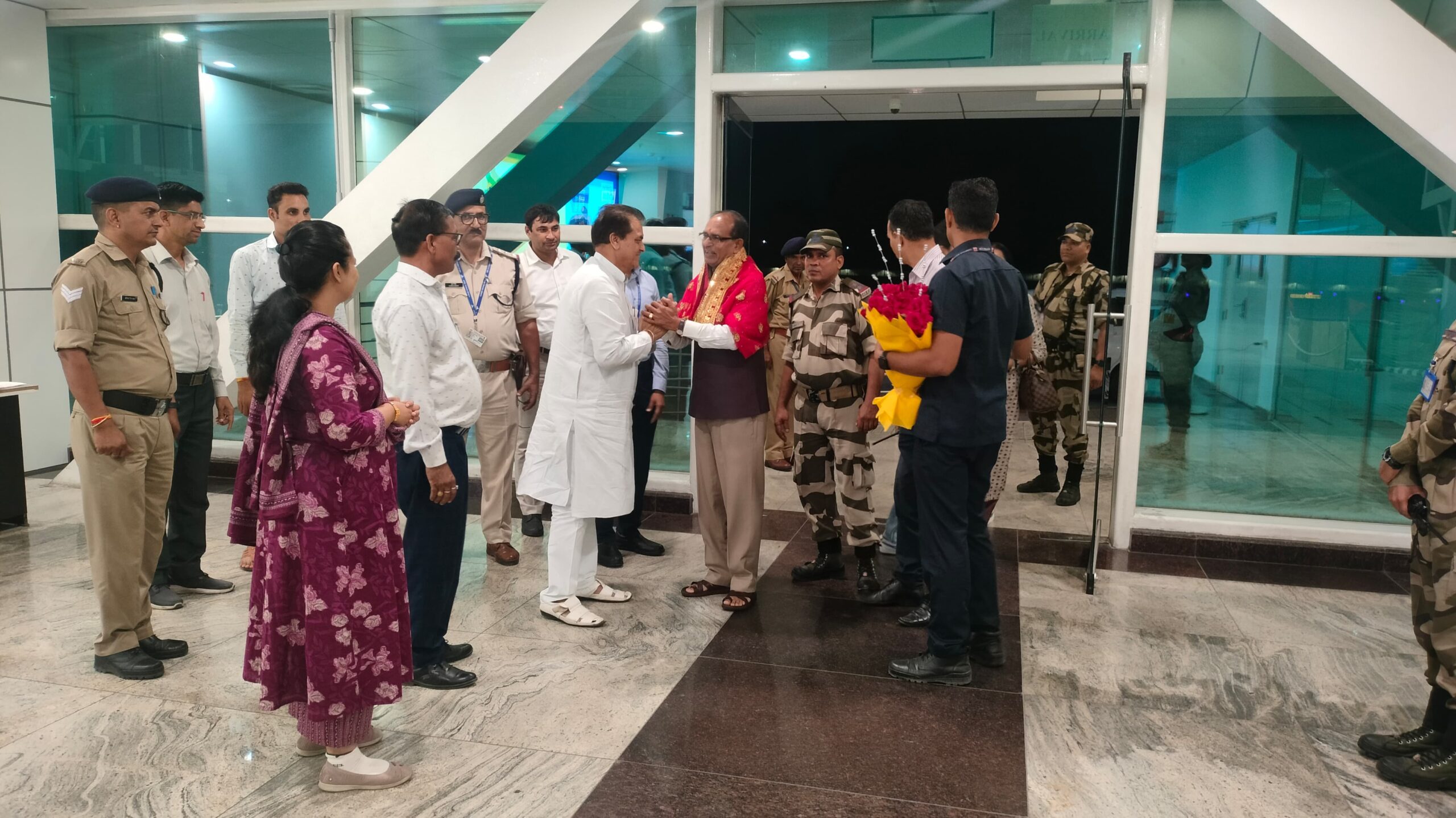 MP के CM शिवराज सिंह चौहान का राज्य सरकार की ओर से मंत्री डॉ प्रेमचंद अग्रवाल ने किया स्वागत