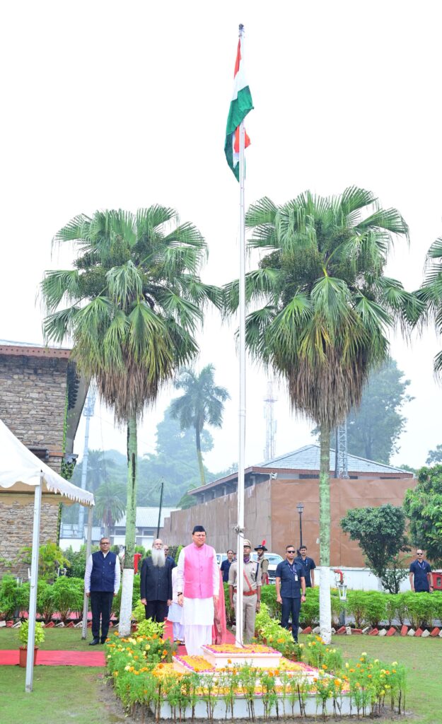 देहरादून, न्यूज यूके लाइव डॉट इन। मुख्यमंत्री पुष्कर सिंह धामी ने 79वें स्वतंत्रता दिवस के अवसर पर मुख्यमंत्री आवास में ध्वजारोहण किया। इस अवसर पर उन्होंने राष्ट्रीय एकता की शपथ भी दिलाई।