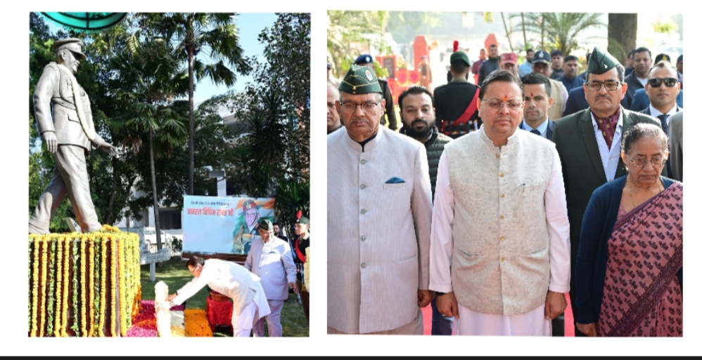 देहरादून, न्यूज यूके लाइव डॉट इन। मुख्यमंत्री पुष्कर सिंह धामी ने सोमवार को देहरादून के कनक चौक स्थित पार्क में भारत के प्रथम चीफ ऑफ डिफेंस स्टाफ स्व. जनरल बिपिन रावत की चतुर्थ पुण्यतिथि पर उनकी प्रतिमा पर पुष्पचक्र अर्पित कर श्रद्धांजलि दी।