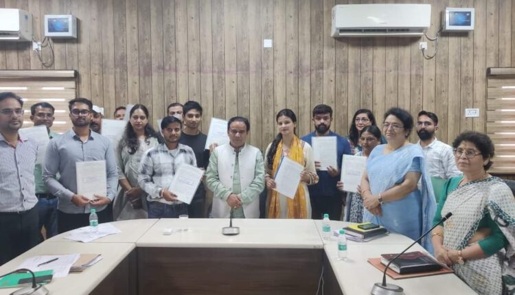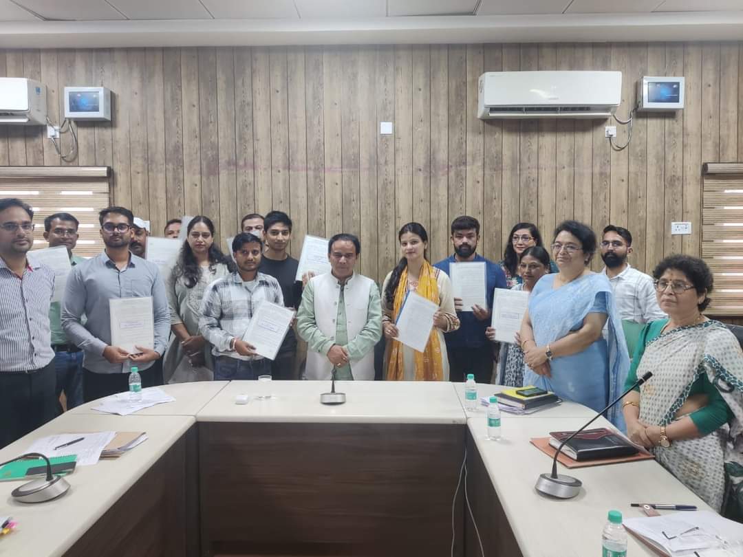 स्वास्थ्य मंत्री डा. धन सिंह रावत ने स्वास्थ्य महानिदेशालय में विभाग के तहत 9 मृतक आश्रितों एवं 2 सीधी भर्ती से चयनित अभ्यर्थियों नियुक्ति पत्र वितरित कर उन्हें सरकारी सेवा में आने पर बधाई दी। उन्होंने कहा कि नवनियुक्त कार्मिकों को राज्य के विभिन्न जनपदों में तैनाती दी गई है। अनुकंपा के आधार पर नौकरी पाने वाले मृतक आश्रितों अरुण कुमार, अखिलेश कुमार बिंद, आकाश कुमार, अमित शर्मा, अश्विनी कुमार, पीयूष जोशी, सुहैल, नीतू रानी एवं वंदना सिंह को विभाग के अंतर्गत विभिन्न स्थानों पर कनिष्ट सहायक पद पर नियुक्ति प्रदान की गई जबकि सीधी भर्ती के तहत चयनित मनोज सिंह एवं प्रिया रावत को वैयक्तिक सहायक पद पर तैनाती दी गई है। विभागीय मंत्री ने स्वास्थ्य महानिदेशालय में विभिन्न रिक्त पदों पर शीघ्र नियुक्ति करने के निर्देश भी अधिकारियों को दिये।