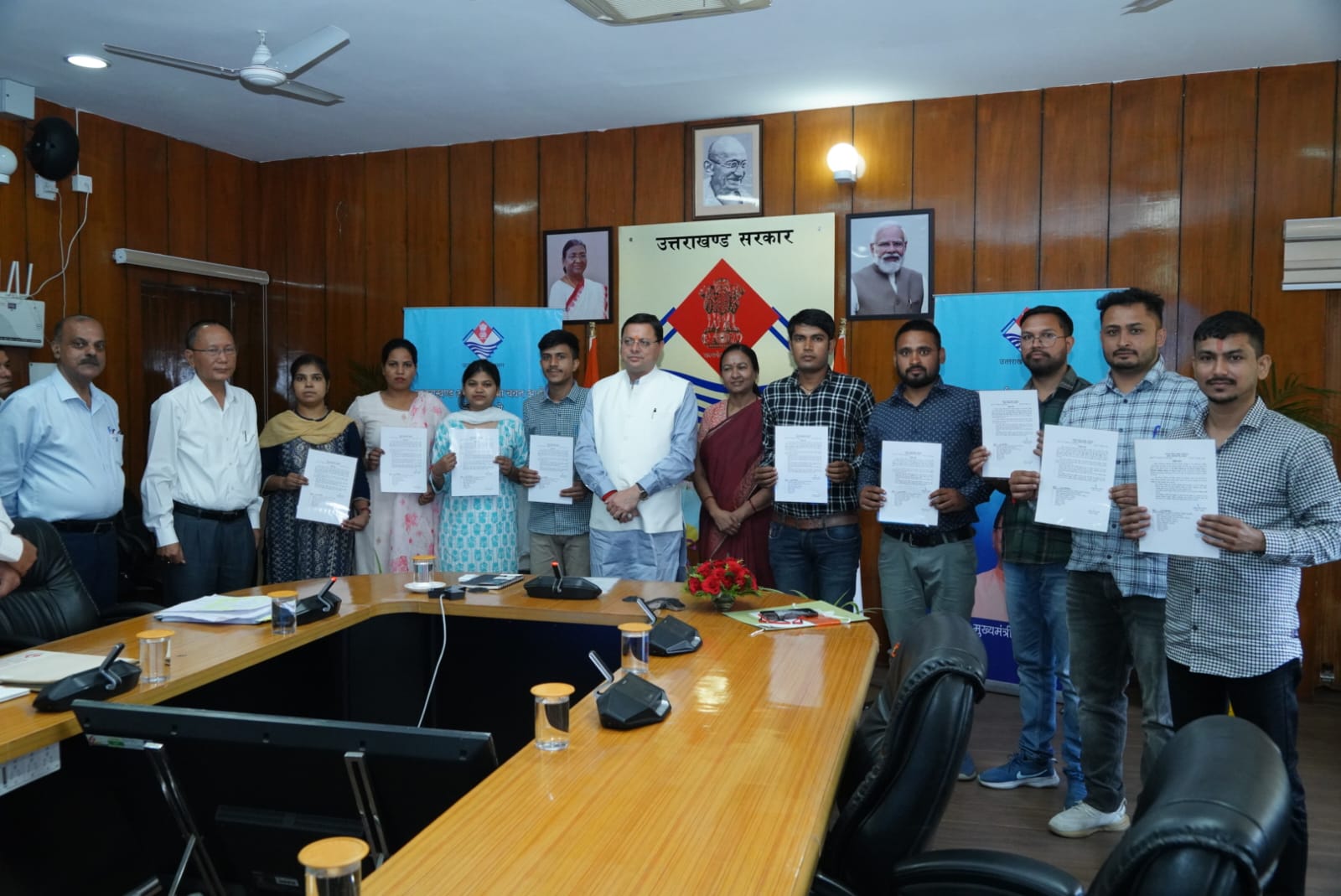 परिवहन विभाग में कनिष्ठ सहायक पद पर चयनित 10 अभ्यर्थियों को सीएम धामी ने दिए नियुक्ति पत्र