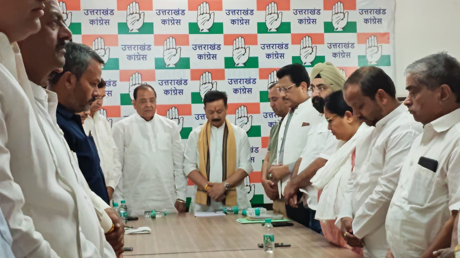 देहरादून, न्यूज यूके लाइव डॉट इन। उत्तराखंड प्रदेश कांग्रेस ने जम्मू कश्मीर में पहलगाम में कल दोपहर आतंकवादियों द्वारा किए गए पर्यटकों पर हमले को नृशंस नरसंहार बताते हुए घटना की कठोर भर्त्सना करते हुए केंद्र सरकार से आतंकवादियों व आतंकवाद पर कठोरतम कार्यवाही की मांग करते हुए आज प्रदेश कांग्रेस मुख्यालय में प्रदेश अध्यक्ष करण माहरा की अध्यक्षता में एक शोक सभा का आयोजन किया जिसमें प्रदेश कांग्रेस के सह प्रभारी सुरेन्द्र शर्मा,नेता प्रतिपक्ष यशपाल शर्मा, पूर्व अध्यक्ष व विधायक प्रीतम सिंह, प्रदेश उपाध्यक्ष संगठन व प्रशासन सूर्यकांत धस्माना, विधायक फुरकान अहमद, विधायक अनुपमा रावत, विधायक वीरेंद्र जाती, महानगर अध्यक्ष डॉक्टर जसविंदर सिंह गोगी, जिला अध्यक्ष मोहित उनियाल, जयेंद्र रमोला, राजवीर सिंह, राकेश सिंह मियां, गौरव चौधरी, बॉबी नौटियाल, वीरेंद्र पोखरियाल, अमन गर्ग, शीश पाल सिंह बिष्ट समेत अनेक महत्वपूर्ण नेता शामिल हुए।
