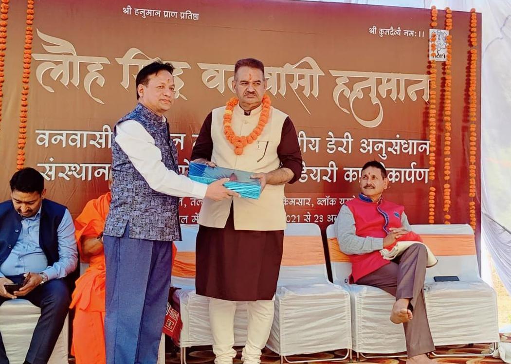 बीएसएनके न्यूज संवाददाता / पौड़ी डेस्क। पौड़ी जिले के यमकेश्वर ब्लॉक के तल्ला बनास के गढ़खाल में लौह सिद्ध बनवासी हनुमान मंदिर की प्राण प्रतिष्ठा और गोमुख डेयरी का लोकार्पण किया गया। इस डेयरी को राष्ट्रीय डेयरी अनुसंधान संस्थान (एनडीआरआई) करनाल के सहयोग से तैयार किया गया है। इसके साथ ही गड़खाल में 21 से 23 अक्टूबर के बीच किसान मेले का आयोजन किया गया। उत्तराखंड के औद्योगिक विकास मंत्री गणेश जोशी, हिंदू धर्म आचार्य सभा के संयोजक स्वामी परमात्मानंद सरस्वती, उत्तराखंड के डीजीपी अशोक कुमार, आईटीबीपी के एडीजी मनोज रावत, बजाज समूह के सलाहकार टीसी उप्रेती, नेहरू पर्वतारोहण संस्थान के प्रिंसिपल कर्नल अमित बिष्ट, समाज सेवी दर्शन भारती की मौजूदगी में 23 अक्टूबर को वनवासी हनुमान मंदिर की प्राण प्रतिष्ठा का कार्यक्रम और गोमुख डेयरी का लोकार्पण संपन्न हुआ।