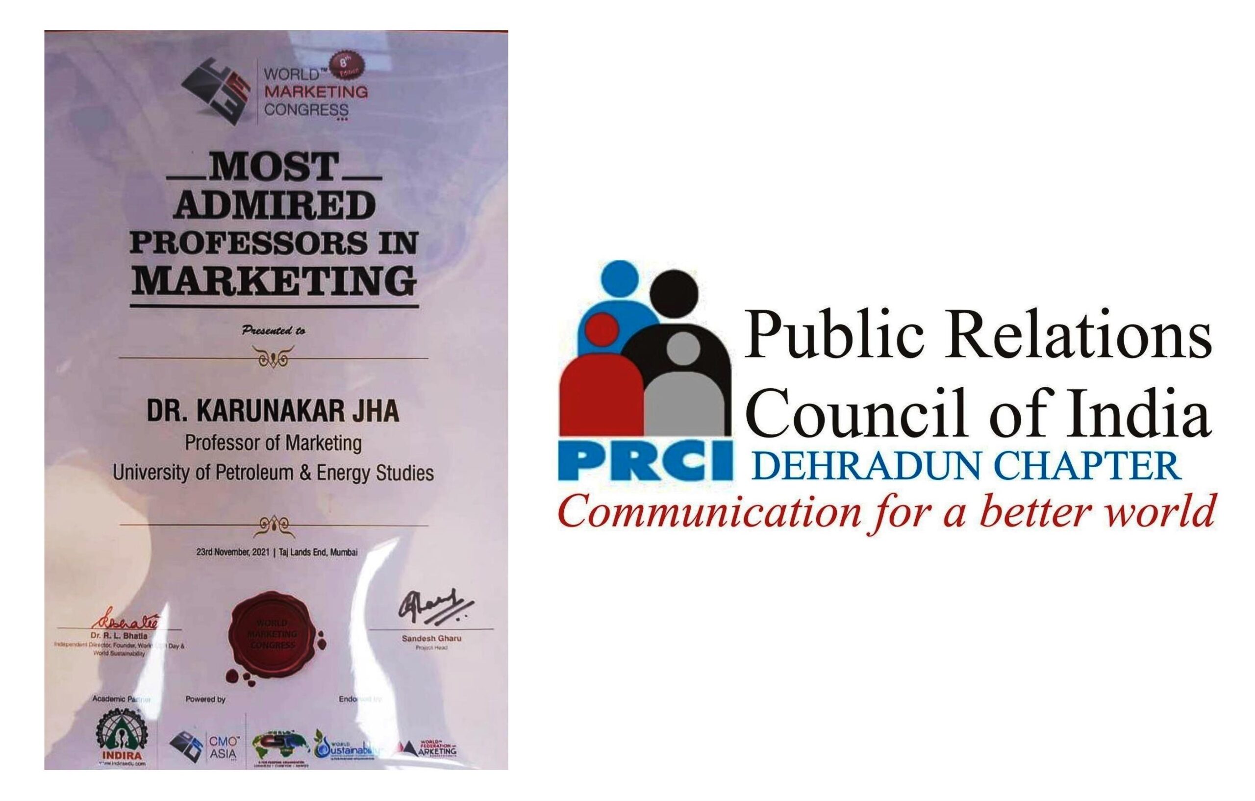 पीआरसीआई देहरादून चैप्टर के अध्यक्ष डॉक्टर करुणाकर झा को “मोस्ट ऐडमायरड प्रोफेसर इन मार्केटिंग“ का मिला खिताब