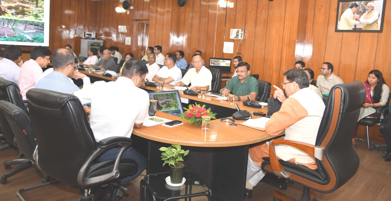 बैठक में अपर मुख्य सचिव श्रीमती राधा रतूड़ी, श्री आनंदवर्धन, सचिव श्री आर के सुधांशु, श्री शैलेष बगोली, वन विभाग, कृषि विभाग, जलागम विभाग तथा सिंचाई विभाग के उच्चाधिकारी उपस्थित थे।