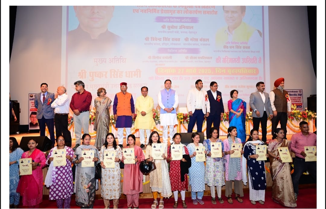 देहरादून, न्यूज यूके लाइव डॉट इन। मुख्यमंत्री पुष्कर सिंह धामी ने गुरूवार को राजकीय दून मेडिकल कॉलेज, पटेलनगर में प्रदेश के सभी मेडिकल कॉलेज में नवनियुक्त नर्सिंग अधिकारियों को नियुक्ति पत्र प्रदान किये। प्रदेश में 1232 नये नर्सिंग अधिकारियों का नियुक्ति दी गई है। इस अवसर पर उन्होंने 26 करोड़ की लागत से बने दून मेडिकल कॉलेज के सभागार का लोकार्पण भी किया।