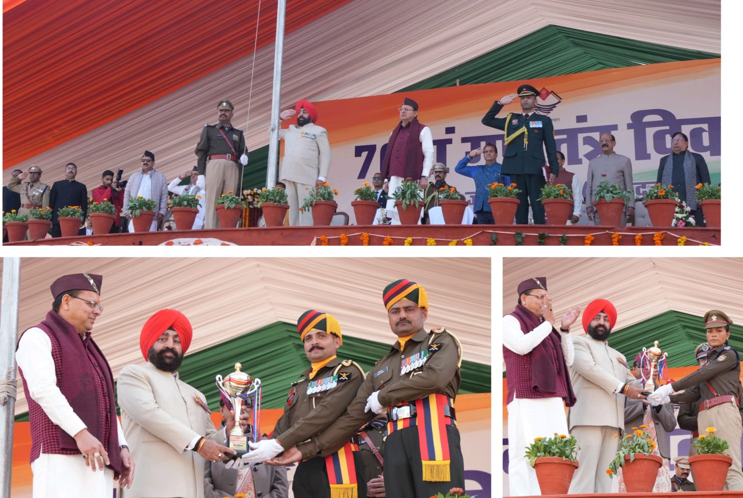 देहरादून, कुसुम गुप्ता। गणतंत्र दिवस की 75वीं वर्षगांठ के अवसर पर राज्यपाल लेफ्टिनेंट जनरल गुरमीत सिंह (से नि) ने रविवार को परेड ग्राउंड में आयोजित गणतंत्र दिवस के मुख्य समारोह में राष्ट्रीय ध्वज फहराया और भव्य परेड की सलामी ली। कार्यक्रम में राज्यपाल लेफ्टिनेंट जनरल गुरमीत सिंह (से नि) और मुख्यमंत्री श्री पुष्कर सिंह धामी द्वारा उत्कृष्ट प्रदर्शन करने वाले पुलिस अधिकारियों को सराहनीय सेवाओं के लिए पदक अलंकरण कर सम्मानित किया गया।