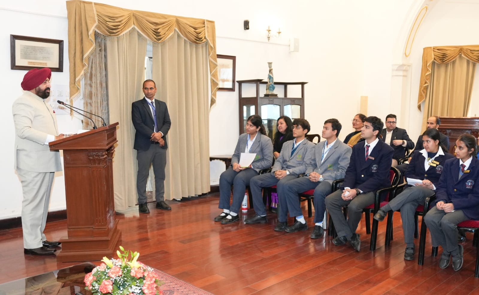 देहरादून, न्यूज यूके लाइव डॉट इन। राज्यपाल लेफ्टिनेंट जनरल गुरमीत सिंह (से नि) ने मंगलवार को लोक भवन में आयोजित युवा संवाद कार्यक्रम “विकसित भारत 2047” के अंतर्गत युवाओं से संवाद किया। इस अवसर पर विभिन्न विद्यालयों से आए विद्यार्थियों ने विकसित भारत 2047 के निर्माण में युवाओं की भूमिका पर अपने विचार प्रस्तुत किए। विद्यार्थियों ने क्रमवार अपने संबोधन दिए, जिनमें युवा भारत के नेतृत्व, दृष्टि और आत्मविश्वास की स्पष्ट झलक देखने को मिली।