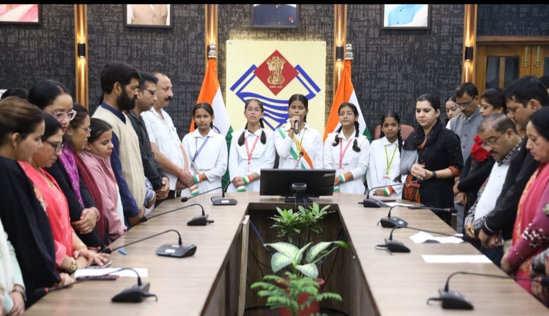देहरादून, न्यूज यूके लाइव डॉट इन। भारत वर्ष के राष्ट्रगीत ‘‘वंदे मातरम्’’ के 150 वर्ष पूर्ण होने के अवसर जनपद के सभी सरकारी, गैर सरकारी कार्यालयों, शिक्षण संस्थानों एवं सामाजिक संगठनों में प्रातः 10 बजे ‘‘वंदे मातरम्’’ का गायन किया गया। जिलाधिकारी सविन बंसल के दिशा निर्देशन में जिला कार्यालय में उप जिलाधिकारी अपूर्वा सिंह की मौजूदगी में क्लेक्ट्रेट परिसर के समस्त अधिकारियों, कार्मिकों एवं श्री गोर्वधन सरस्वती विद्या मंदिर की छात्राओं की उपस्थिति में वंदे मातरम् का सामूहिक गायन किया गया। इस मौके पर देशभक्ति से ओत-प्रोत वातावरण में अधिकारीगण, कार्मिक, शिक्षक, विद्यार्थी सभी उत्साहपूर्वक शामिल हुए।