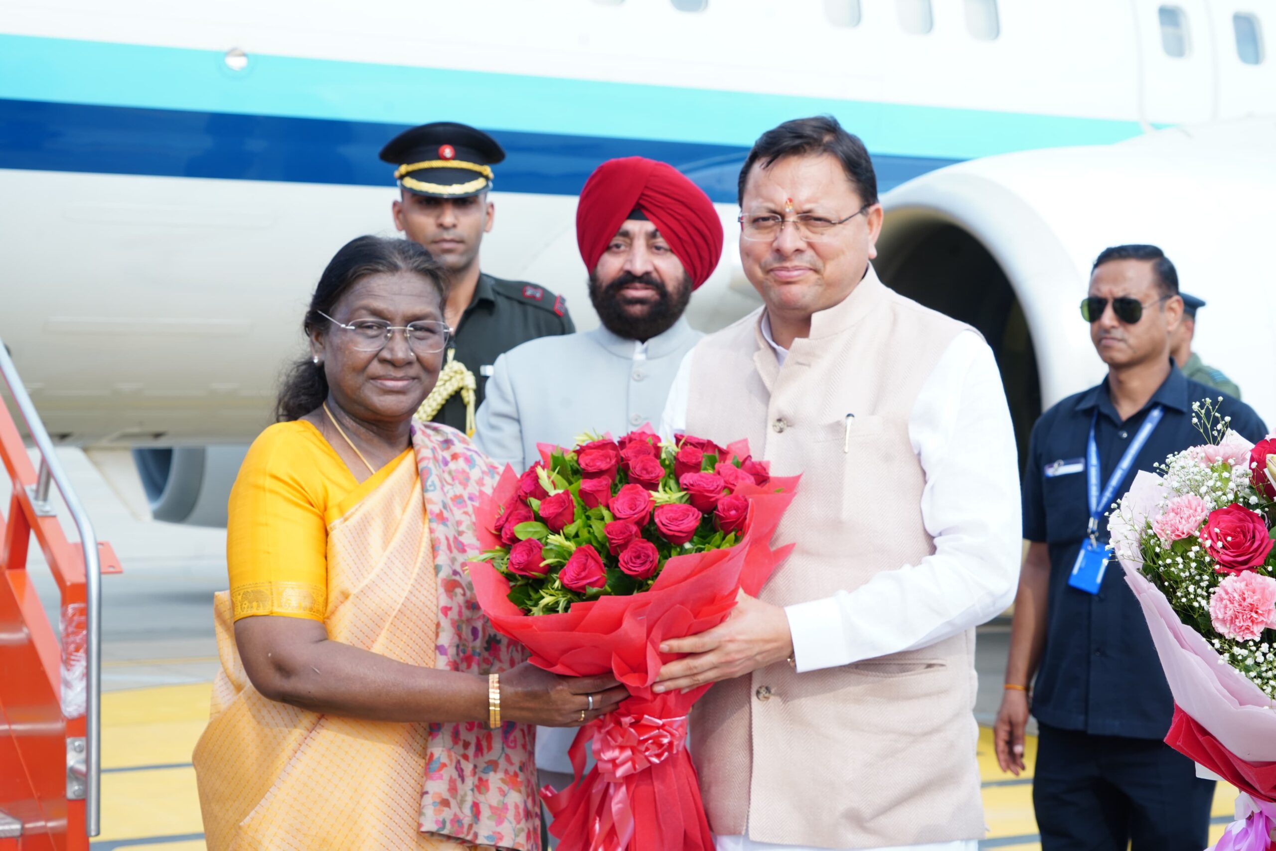राष्ट्रपति द्रौपदी मुर्मु का जौलीग्रांट एयरपोर्ट पर राज्यपाल व मुख्यमंत्री ने किया स्वागत