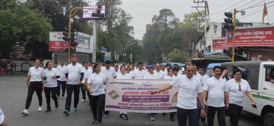 देहरादून, न्यूज यूके लाइव डॉट इन। मुख्य निर्वाचन अधिकारी कार्यालय उत्तराखंड एवं सचिवालय एथलीट और फिटनेस क्लब की तत्वावधान में सचिवालय एटीएम चौक से घंटाघर तक मतदाता जागरूकता रैली निकाली गई।