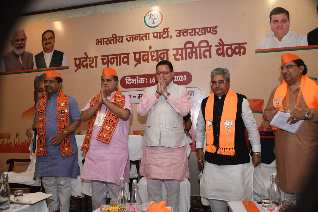 राजपुर रोड स्थित एक निजी होटल में संपन्न हुई इस बैठक में प्रदेश प्रभारी एवं राष्ट्रीय महामंत्री दुष्यंत गौतम, मुख्यमंत्री पुष्कर धामी एवं प्रदेश अध्यक्ष महेंद्र भट्ट ने साथ प्रदेश कोर ग्रुप सदस्यों ने शिरकत की बैठक के उपरांत मीडिया से अनौपचारिक बातचीत में प्रदेश प्रभारी एवं राष्ट्रीय महामंत्री दुष्यंत कुमार गौतम ने कहा कि संगठन देवभूमि की जनता का बहुत बहुत आभारी है जिन्होंने जमकर मोदी जी को लगातार तीसरी बार पीएम बनाने के लिए आशीर्वाद दिया है। साथ ही कहा कि कार्यकर्ताओं की जीतोड़ मेहनत का नतीजा है, लगातार राज्य की पांचों सीटों पर पार्टी का जीत की हैट्रिक लगाना। प्रदेश कोर कमेटी के सदस्यों ने भी सर्वसम्मति से सभी लोकसभा सीटों पर कमल खिलाने वाले अपने देवतुल्य पार्टी कार्यकर्ताओं का आभार व्यक्त किया है । उन्होंने जोर देते हुए कहा कि कोर ग्रुप में विधानसभा उपचुनावों को लेकर जो रणनीति तैयार की गई है, उससे दोनों सीटों पर भी भाजपा उम्मीदवारों का जीतना निश्चित है।