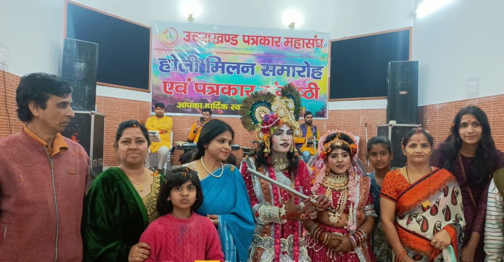 देहरादून, न्यूज यूके लाइव डॉट इन। लोक कलाकारों द्वारा प्रस्तुत राधा कृष्ण के शानदार लोकनृत्य और लोकगीतों के बीच उत्तराखंड पत्रकार महासंघ ने जमकर फूलों की होली खेली और एक दूसरे को रंगों के त्योहार की शुभकामनाएं दी।