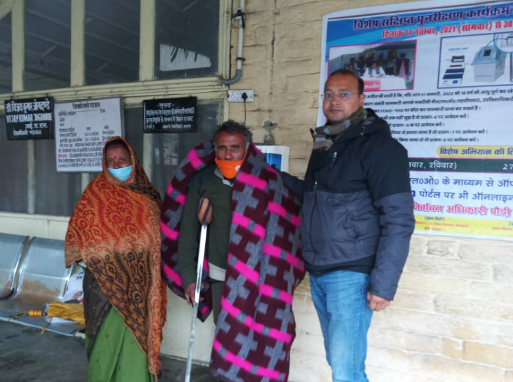 उपजिलाधिकारी आकाश जोशी ने किए दिव्यांग जन को कंबल वितरित